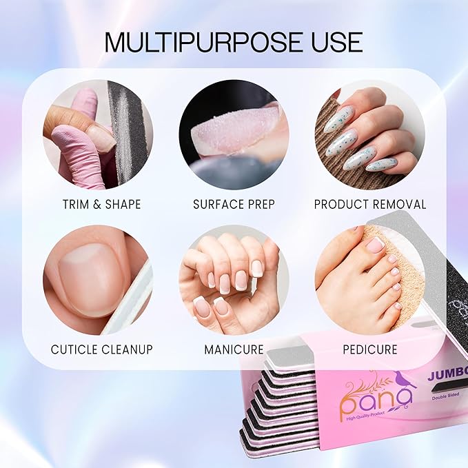 - [Uses] These nail files are ideal for shaping and smoothing natural and acrylic nails. The effective grit allows for quick reduction of length and thickness, while also refining edges with precision.