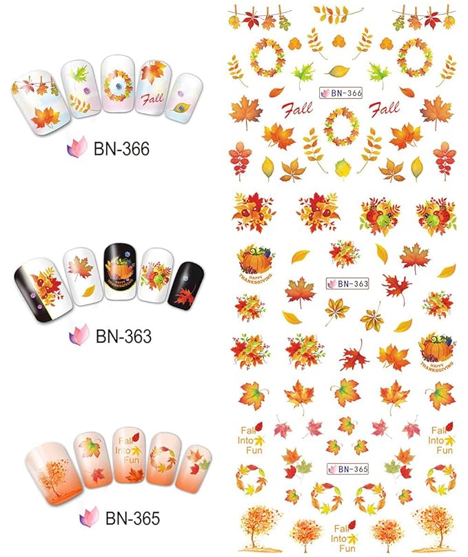 - OCCASIONS: Fall nail art decals will be the best gift for your female friends, your mom, your wife. Autumn nail stickers are perfect for home nail DIY and professional nail salon