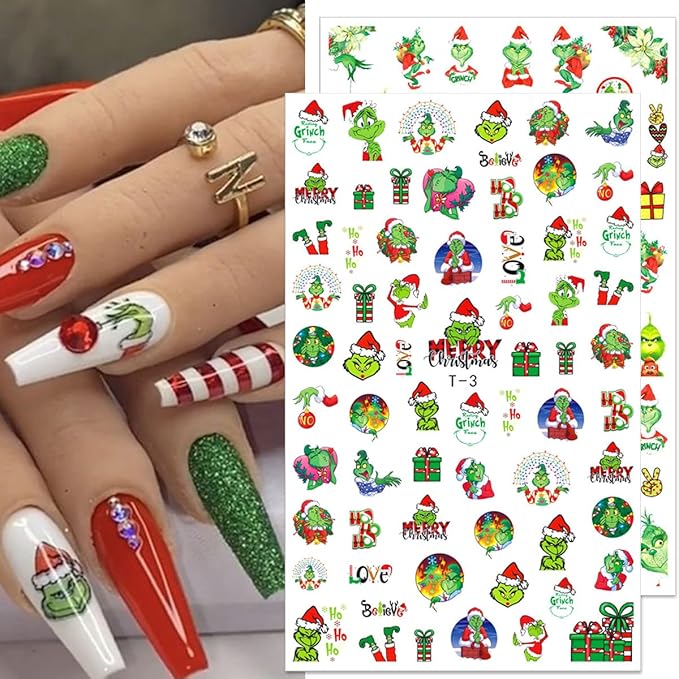 - 【Premium Material】- Christmas nail decals are made of environmental friendly, skin friendly, and non-toxic materials. The nails still remains glossy after remove the stickers. You can design your own unique Christmas nail decorations.