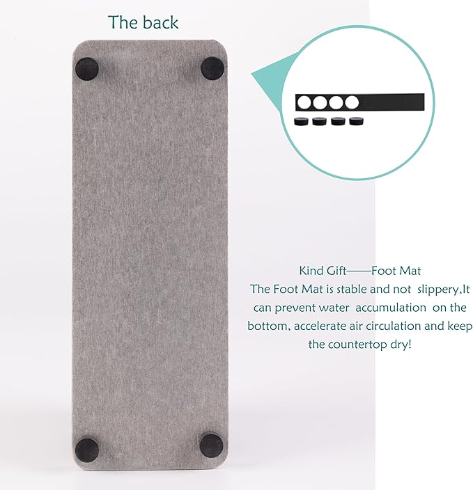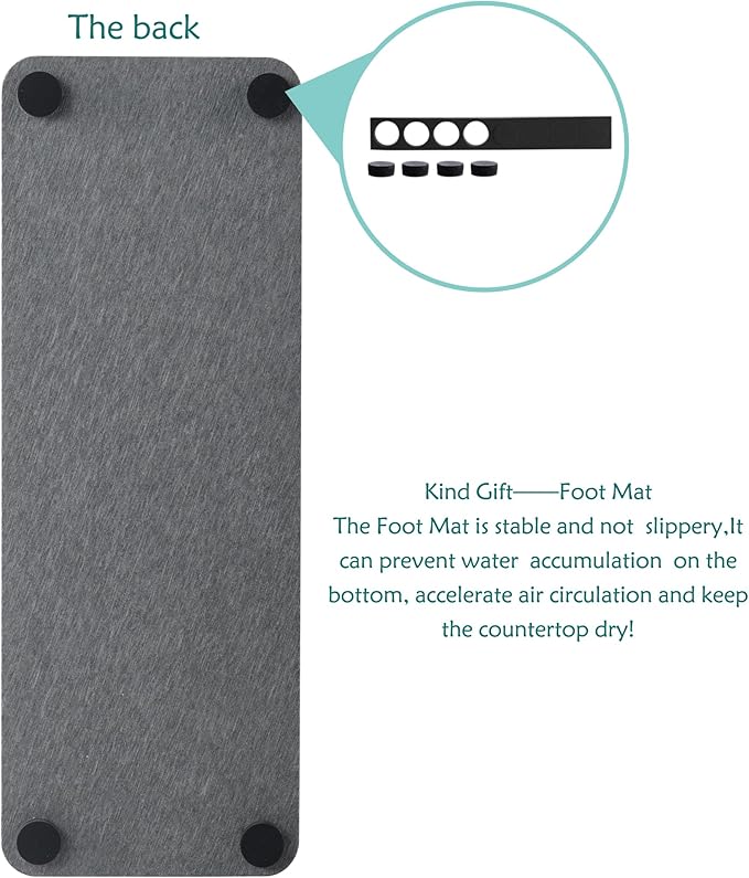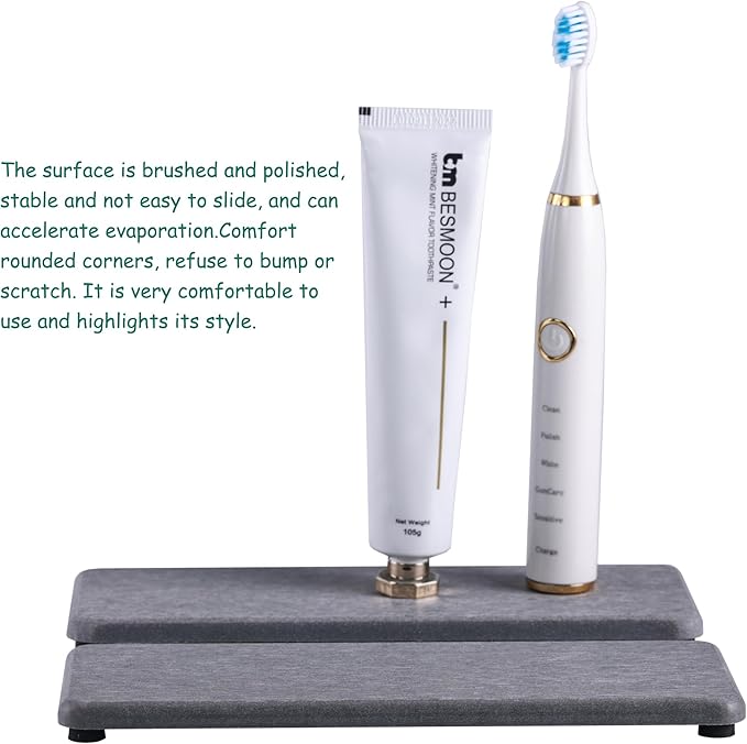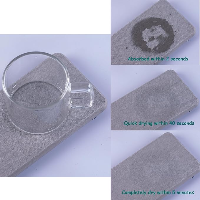- Made from natural Diatom mud and plant fiber, small holes within diatomite enable it have amazing water absorption. They could absorb water and gets dry in a few minutes. It makes the Bathroom Counter top more dry and tidy.