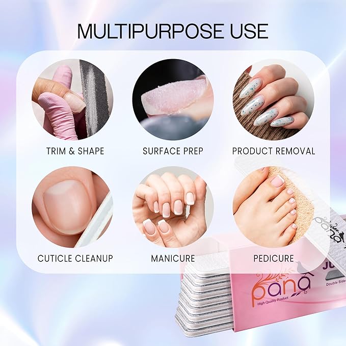 - [Uses] These nail files are ideal for shaping and smoothing natural and acrylic nails. The effective grit allows for quick reduction of length and thickness, while also refining edges with precision.