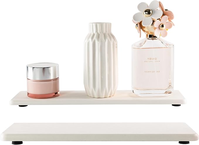 2 Pcs Water Absorbing Stone Trays, Kitchen/Bathroom Sink Soap Dish, Diatomite Tray Used for Hand Soap & Cosmetic Bottles in The Modern Home, 3.15" W x 11.8" L, White