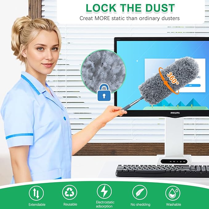 - 2-Piece Set: There are two microfiber telescopic dusters. You can use one and keep the other as a spare. You can also clean at the same time with two people to save time during cleaning.