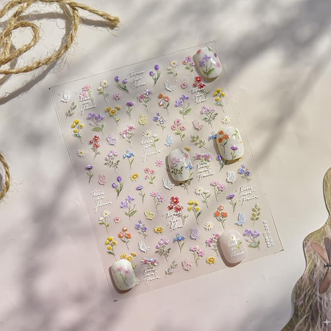 - Exquisite Nail Design➤ Nail decals are designed with differet colorful patterns, contains patterns such as wild flower daisy floral, It provides you with a variety of options to give full play to your rich imagination of nail DIY needs.