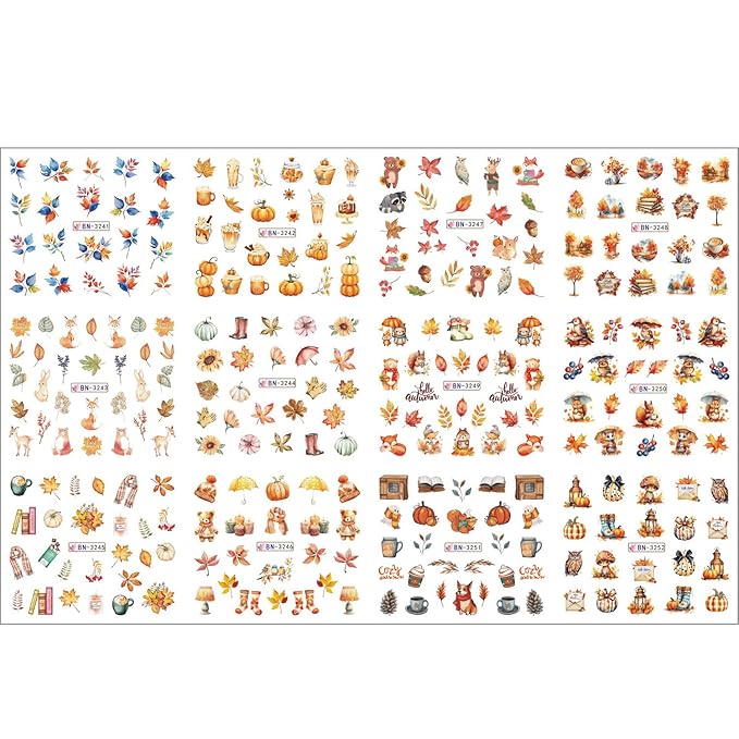 - Packaging: In this package, you will receive 12 sheet fall nail art stickers, where you can find your favorite patterns and create your own style. Suitable for women, children and girls, exquisite nail design DIY fashion nail decoration.
