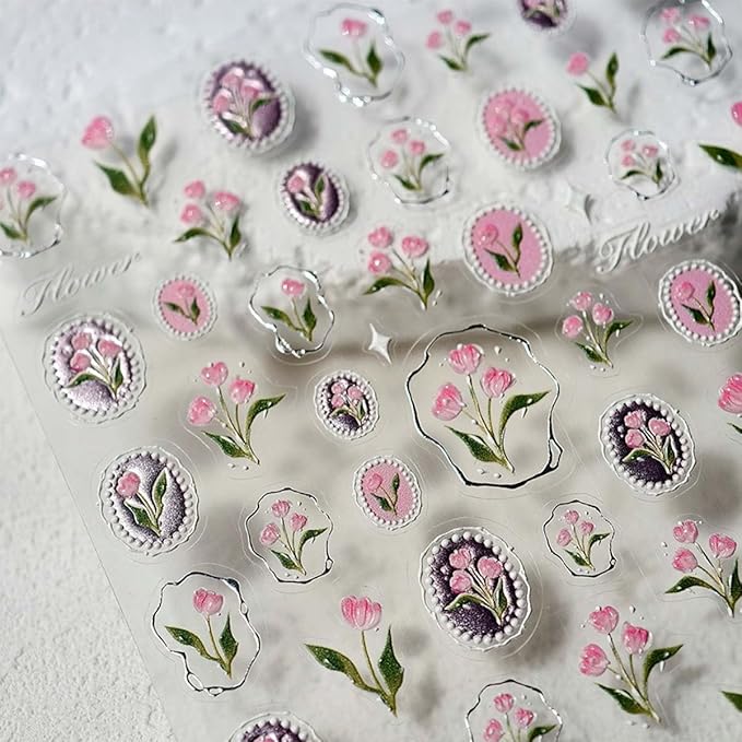 - Self-Adhesive Design: 5D self-adhesive cute tulip nail decals for nails art is simple and quick to use,cute nail stickers for nail accessories work great on bare nails, they will stay on for a long time and will not peel off your nails, enjoy the feeling of nail art